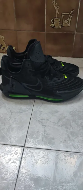 Zapatillas deportivas Nike Lebrón en talla 44. Se entrega en persona - Diseño en color negro con detalles en verde neón. - Logo de Nike en el lateral.