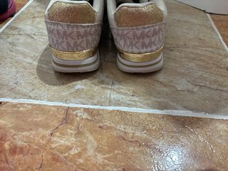 Color es el de la primera foto, Zapatillas Originales Michael Kors, originales, talla 38.5, medida del pie 24.2 cm En su caja original, con plumas fantasia rosas.