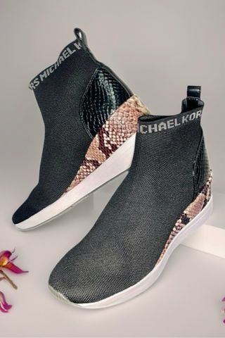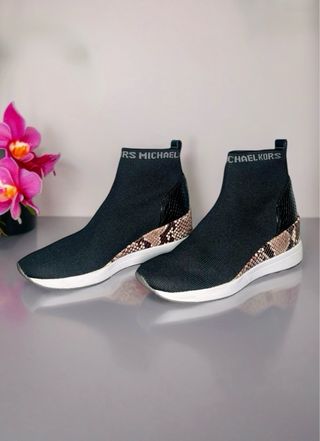 Zapatilla tipo botín de la marca Michael Kors, modelo Zuma. - Diseño tipo calcetín. - Detalle de logo MK en la parte trasera. - Suela blanca. Vendo porque me quedan grandes. Fueron un regalo. Precio negociable.