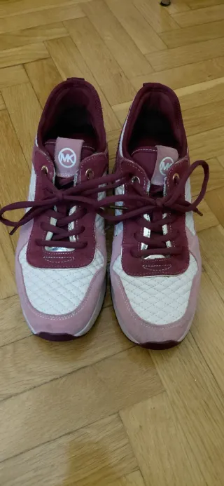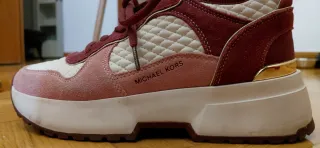 Zapatillas de la marca Michael Kors, modelo Olympia Trainer, en tonos rosas y burdeos. Presentan un diseño acolchado en la puntera y detalles plateados. - Cierre con cordones. - Logo de Michael Kors en la lengüeta. Vendo por falta de uso. Las usé 2 o 3 veces pero me quedan grandes.