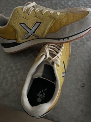Zapatillas Munich de estilo deportivo con detalles en negro. - Combinación de materiales en el exterior. - Suela de goma. - Cierre con cordones. Se han usado una sola vez y las vendo porque me he confundido de talla