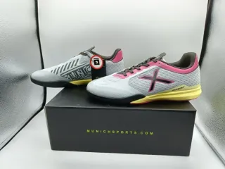 Zapatillas Munich para fútbol sala en talla 41. Diseñadas para ofrecer comodidad y rendimiento en la pista. - Exterior de malla transpirable. - Detalle de la marca en el lateral. - Suela de goma adherente.