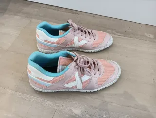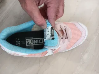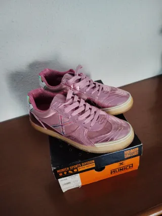 Zapatillas deportivas Munich en color rosa y blanco, talla 36. - Diseño deportivo. - Detalles en azul claro. - Cierre con cordones. Mi hija se las puso una vez y cuando se volvió a acordar que las tenía, le iban pequeñas.