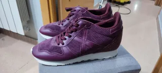 Zapatillas de la marca Munich en tono morado. Se han usado 2 veces si llega, están nuevas. - Diseño deportivo. - Combinación de materiales. - Suela blanca.