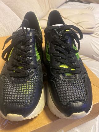 VENTA EN MANO SOLO EN BARCELONA CONSULTAR ENVÍO Zapatillas Munich con cordones elásticos. - Diseño en negro y verde. - Talla infantil unisex.