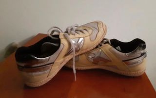 Zapatillas Munich Goal de estilo deportivo. Están en bastante usadas y se les ha ido la parte brillante de la zona de atrás como se ve en las fotos, pero se pueden utilizar perfectamente - Color beige y detalles plateados. - Talla 41.