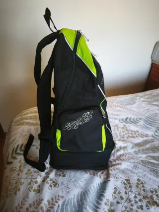 Mochila Errea con un diseño moderno y práctico. - Compartimento inferior diseñado para zapatillas. - Combinación de colores negro y verde vibrante. - Cierre con cremalleras. - Asa superior para colgar o transportar.