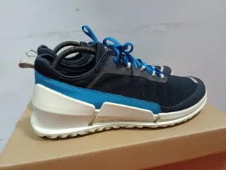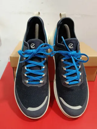 Zapatillas deportivas ECCO en talla 40. Combinan tonos azules y negros para un look moderno. - Diseño deportivo. - Cierre con cordones elásticos. - Detalle de logo en la lengüeta.