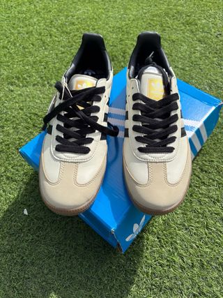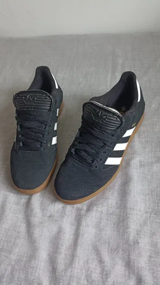Zapatillas Adidas Busenitz con suela marrón. Talla 42 y 2/3. Yo utilizo 43 y me quedan bien. Las compré en octubre, tienen 1 uso, se puede ver en las suelas, que están intactas. Venían con lengueta larga, que se puede cortar (yo lo hice).