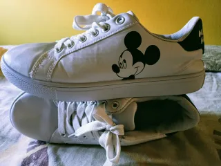 Zapatillas casuales con diseño de Mickey Mouse. - Color blanco con detalles en negro. - Estampado de Mickey Mouse en el lateral. - Cierre con cordones.