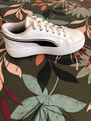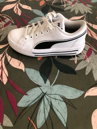 Zapatillas Puma de mujer en blanco y negro. Un diseño clásico y versátil. - Detalle de franjas laterales. - Cierre con cordones.