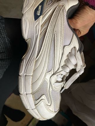 Zapatillas deportivas Asics en color negro con detalles blancos. Perfectas para el día a día o para hacer deporte. Con mancha en el exterior y por dentro un poco roto sin tener mucho desgaste , no afecta a lahora de correr - Diseño moderno y cómodo. - Suela de goma. - Cierre con cordones.