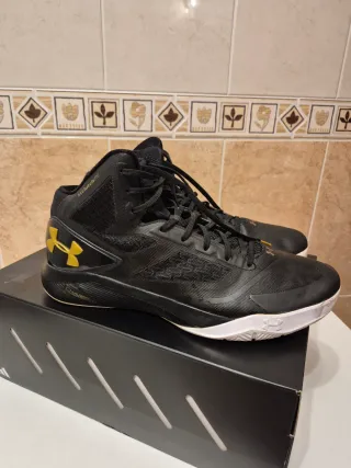 Zapatillas deportivas para hombre de Under Armour. - Diseño en color negro con detalles dorados. - Modelo de caña alta.