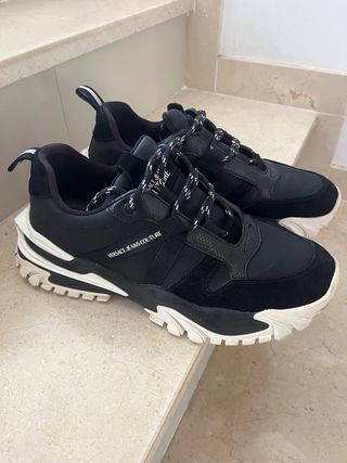 Zapatillas deportivas de la marca Pull&Bear en color negro. Se han despegado muy poco per se arregla fácil. Usadas 2 veces. - Diseño clásico y versátil. - Cierre con cordones. - Logo en la plantilla.