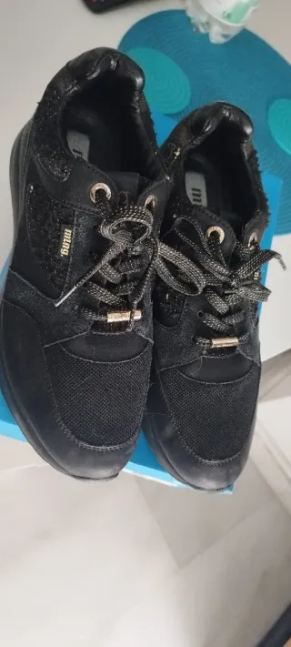 Zapatillas deportivas de la marca MTNG en color negro y detalles dorados. Perfectas para el día a día. - Cierre con cordones. - Suela de goma. - Diseño moderno y cómodo.