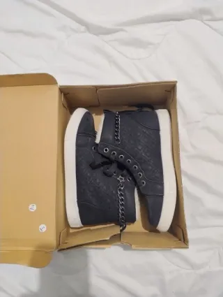Vendo zapatillas negras estilo urbano, completamente nuevas y sin uso. Diseño elegante con puntera reforzada y suela gruesa dentada. Muy cómodas y con acabado de alta calidad. 📏 Talla: US 9 (equivalente a EU 42,5–43 aprox.) 📐 Ancho: 4E (extra ancho, muy cómodas) 📏 Suela exterior aprox. 30 cm 📦 Sin caja ✔️ Estado: nuevas, nunca usadas (suela intacta) Perfectas para quien busca zapatillas de diseño con estilo moderno y versátil, fáciles de combinar. Precio: 250€ negociables