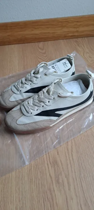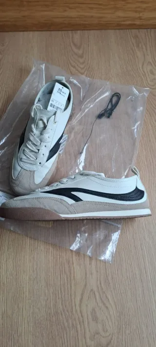 Zapatillas de la marca Parfois en tonos beige y blanco. - Diseño deportivo. - Cierre con cordones. - Detalle de banda lateral en negro. Con un solo uso