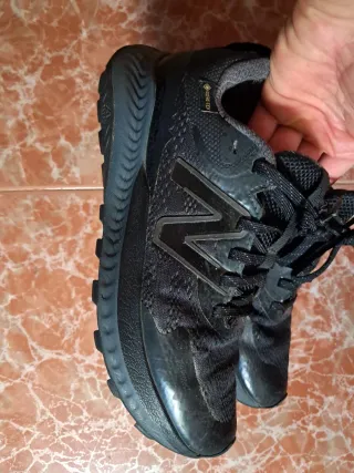 Zapatillas de trekking New Balance en color negro. Perfectas para tus aventuras al aire libre. - Diseño resistente y cómodo. - Tecnología Gore-Tex para impermeabilidad. - Suela con buen agarre.
