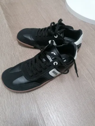 Zapatillas deportivas Mustang en color negro, estilo barefoot. - Cierre con cordones. - Detalle lateral con logo. - Suela de goma. Utilizadas dos veces. Vendo porque no me adapto. Incluye plantilla de transición y plantilla cero. Compradas en diciembre. Precio nuevas 49,95 €. Embalaje original