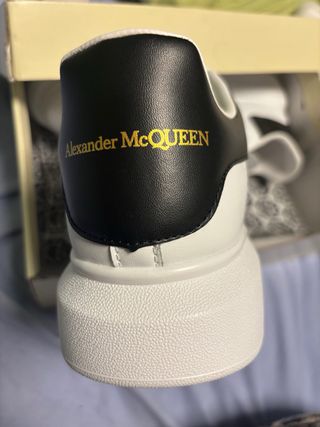 Zapatillas de Alexander McQueen con un diseño moderno y elegante. - Combinación de cuero negro y blanco. - Detalle del logo de la marca en dorado en la parte trasera. - talla 45