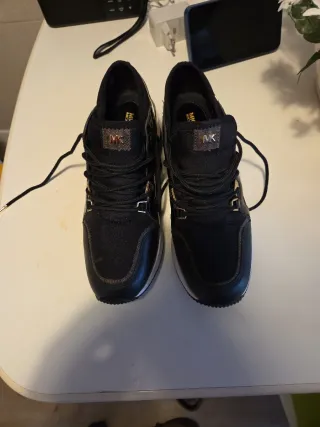 Zapatillas de la marca Michael Kors en talla 37. - Diseño en color negro con detalles dorados. - Cierre con cordones. - Logo de la marca en la lengüeta.