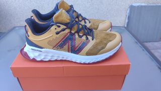 Zapatillas deportivas New Balance en tonos beige y gris me costo en JD 120 me la he puesto 3 veces por que tiene una mancha. - Diseño con paneles de ante y malla. - Cordones a juego. - Logo de la marca en la lengüeta y el lateral.