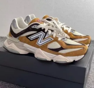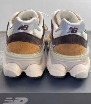 Zapatillas New Balance 9060 en color beige y marrón. Disponibles en talla 43. - Diseño moderno y urbano. - Combinación de ante y malla. - Detalle del logo 'N' en los laterales.
