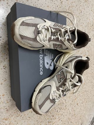 Zapatillas de la marca New Balance 530 retro en tonos beige y marrón. Solo estrenadas. Amortiguación ABZORB, que aporta una comodidad a tus pies. - Diseño deportivo y moderno. - Materiales textiles y sintéticos. - Cordones para un ajuste seguro. ⚠️ PRECIO NO NEGOCIABLE. NO RESERVAS. NO ENVÍOS. Recogida en Badalona Centro Martí Pujol ( Cerca de estación y metro ) Horario amplio.