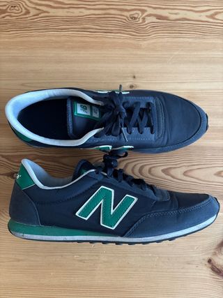 Zapatillas deportivas New Balance modelo 410. - Diseño en color azul marino con detalles en verde. - Logo de la marca en el lateral. - Cierre con cordones.