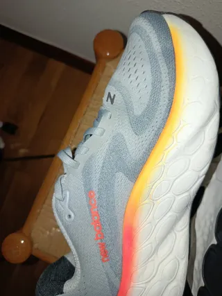 Zapatillas con placa de carbono New Balance Supercomp Trainer V4 en tonos beige y naranja. Diseñadas para ofrecer comodidad y rendimiento. - Parte superior de malla transpirable. - Detalle de cordones en naranja. - Suela con amortiguación. - Diseño moderno y deportivo. Se venden porque no termino de hacerme a ellas, tienen algunas salidas pero estan aun en perfectas condiciones.