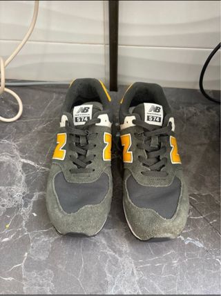 Zapatillas deportivas New Balance modelo 574. - Combinación de colores gris y amarillo. - Diseño icónico de la marca. Tiene un poco de pelotillas por dentro