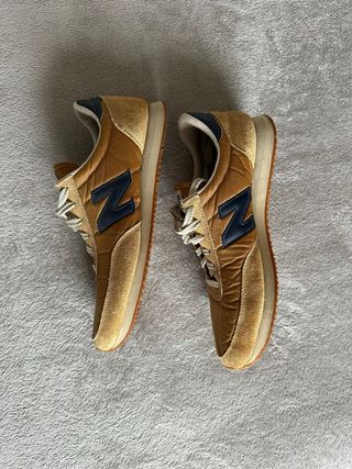 Zapatillas de estilo casual con una combinación de colores verde y beige. - Diseño deportivo. - Detalle de la 'N' característica de la marca. - Se venden porque me regalaron la talla equivocada. Están nuevas, nunca de han usado.