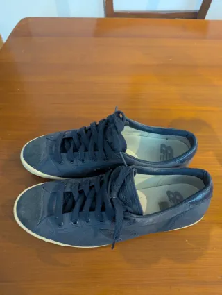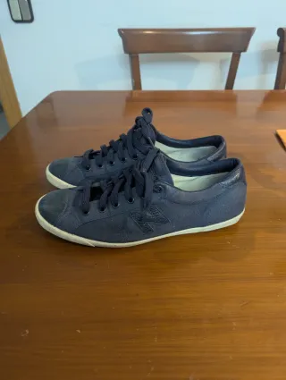 Zapatillas casuales de la marca New Balance en color azul marino. - Diseño de corte bajo. - Cierre con cordones. - Detalle de logo en el lateral. - Es un 44 pero dan menos talla - Poco uso