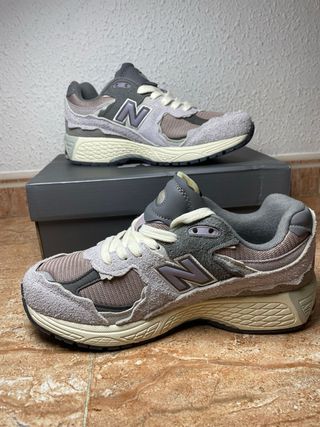 Zapatillas New Balance 2002r con un diseño moderno y detalles únicos. - Combinación de colores gris y morado. - Talla 40.