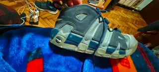 Zapatillas deportivas Nike Air More Uptempo Low en color azul y blanco. Cómo nuevas, solamente se han puesto dos veces. - Diseño icónico. - Suela con amortiguación visible.