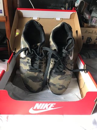 Regalo Zapatillas Nike Air LEER. Precioso color de camuflaje y amplia cámara de aire para amortiguar en la suela. Poco uso. Regalo con compra de 20€ en mi perfil.
