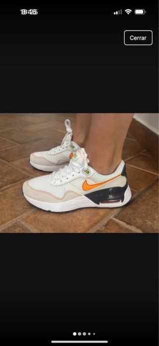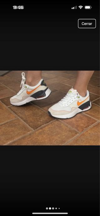 Zapatillas deportivas Nike Air Max, sin estrenar y 100% originales. - Diseño moderno con detalles en naranja. - Combinación de blanco y tonos neutros.