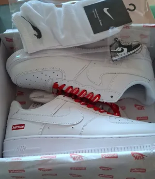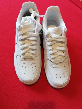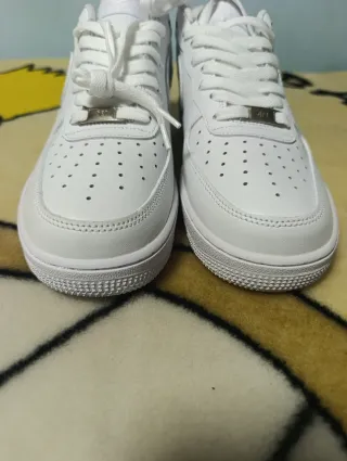 Zapatillas Nike Air Force 1 en color blanco. - Diseño clásico y versátil. - Detalles de la marca visibles. Zapatillas Nike Air Force 1 nuevas a estrenar, nunca usadas y con caja original. Diseño clásico en blanco con detalles en negro, modelo icónico y atemporal que combina con todo. Fabricadas con materiales de alta calidad, muy cómodas y resistentes, perfectas para uso diario o estilo urbano. Suela con buena amortiguación y ajuste cómodo. 👟 Modelo: Nike Air Force 1 ✨ Estado: Nuevo 📦 Incluye caja original