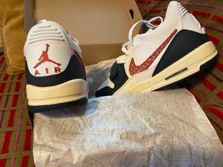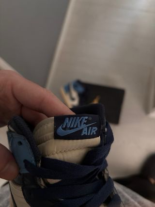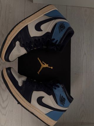 Pack de dos pares de zapatillas Nike Air Jordan originales. - Diseño en color negro con detalles dorados. Número de pie de esta zapatilla: 42 - Diseño en Color azul y blanco, con logo bordado. Número de pie de este par: 45
