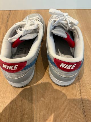 Zapatillas deportivas Nike con un diseño llamativo. - Combinación de colores azul y blanco. - Estilo deportivo y moderno.