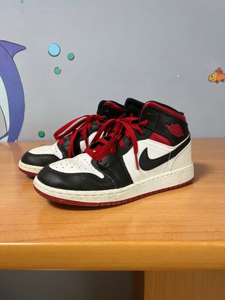 Zapatillas Nike Air Jordan 1 Mid. - Diseño clásico con paneles. - Cordones rojos. - Suela de goma.