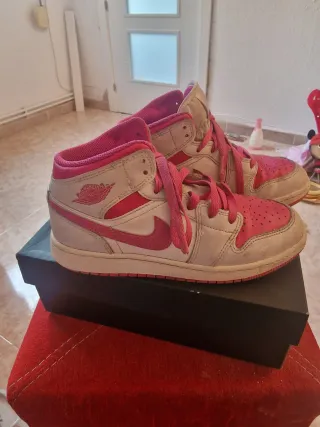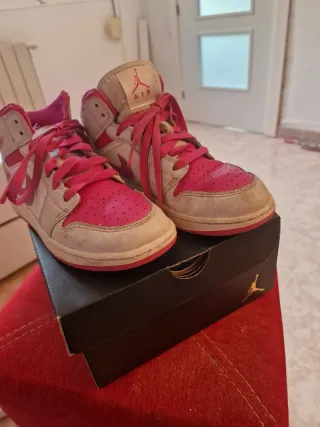 Zapatillas de caña media con un diseño llamativo en rosa y blanco. - Logo de Jordan en el lateral. - Cordones a juego. - Diseño de caña alta.