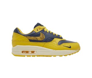 Zapatillas Nike Air Max 1 '87: - Combinación de colores azul marino y amarillo. - Detalle de textura tipo piel de serpiente en el Swoosh. - Suela de goma duradera.