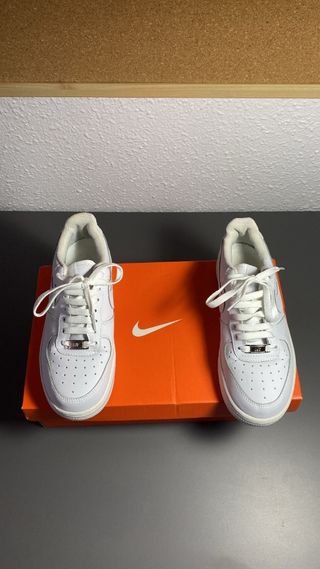 Zapatillas Nike Air Force 1 nuevas a estrenar de color blanco. TALLA 43 Las vendo porque se equivocaron de talla y no me sirven (para más información escríbeme) - Diseño clásico y versátil. - Suela de goma. - Cierre de cordones.