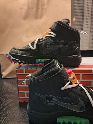 Nike Air Forces 1 mid colaboración X Off White. Colores: Negro, gris, naranja, rosa, verde, blanco y azul. Estado: Nuevas sin estrenar, compradas en Tienda Nike. Marca: Nike X Off White. Talla: 37,5, pero calza 38.