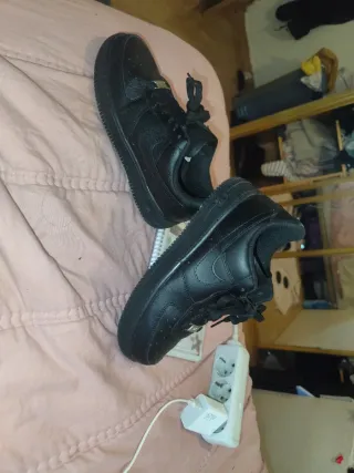 Zapatillas Nike Air Force de color negro. Un clásico que nunca pasa de moda. - Diseño icónico. - Material exterior de cuero. - Suela de goma. - Talla 38,5. - Sin usar en su caja.