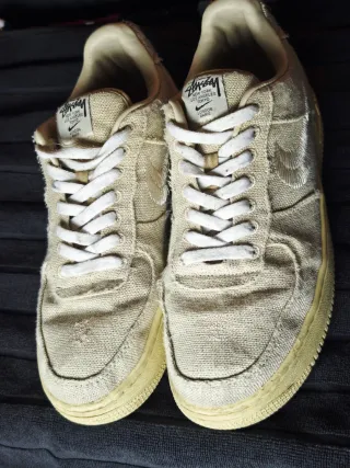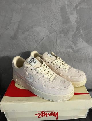 Zapatillas Nike Air Force 1 Low Stussy Fossil. Presentan desgaste visible en las fotos. - Diseño en color beige y blanco. - Colaboración Stussy.