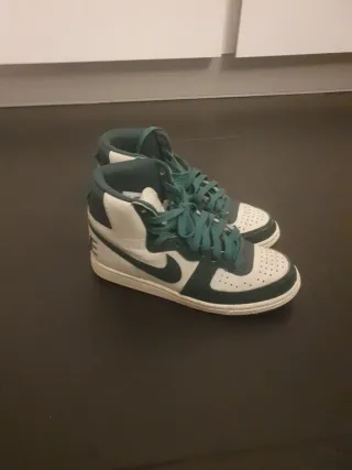 Estan nuevas , tres puestas Zapatillas altas Nike Air Jordan en color verde y blanco. - Diseño clásico de baloncesto. - Cordones verdes a juego. - Logo de Nike en el lateral.