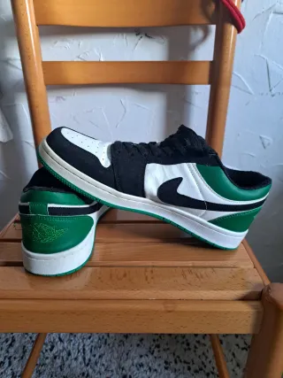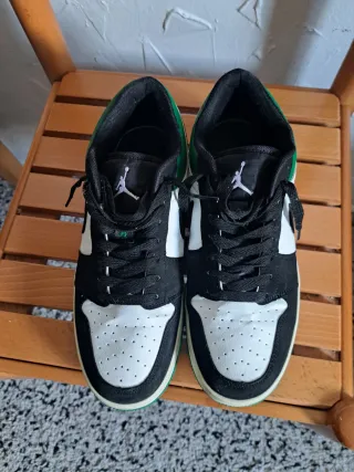 Zapatillas Nike Air Jordan 1 Low. - Diseño bajo. - Combinación de colores negro y verde. - Talla 42 EUR.