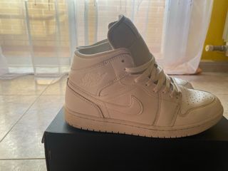 Nike Air Jordan 1 Mid – Blanco | Talla 44 Zapatillas Nike Air Jordan 1 Mid originales, en color blanco, muy fáciles de combinar. Fabricadas en piel, cómodas y resistentes. Diseño clásico Jordan, ideales para uso diario o streetwear. 👟 Talla: 44 📌 Estado: poco uso, muy buen estado (ver fotos) 📦 Incluye caja ✔️ Originales precio algo negociable.
